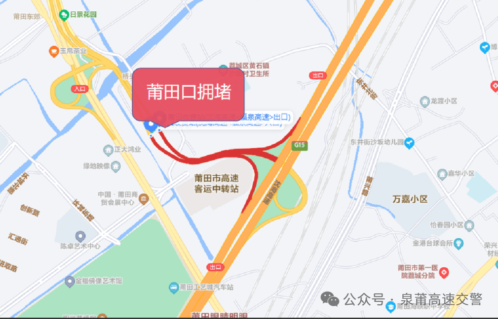 (2)福州往莆田市区匝道拥堵时:建议从莆田西、莆田南收费站下高速前往市区。