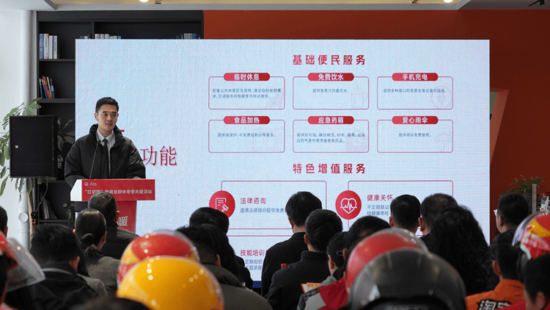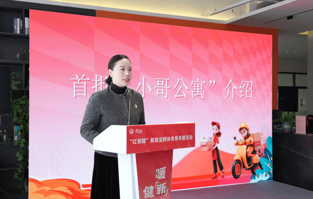 随着外卖骑手李园园、快递员丁迎新与市委社会工作部、市住建局负责人共同按下启动屏,现场响起热烈掌声。