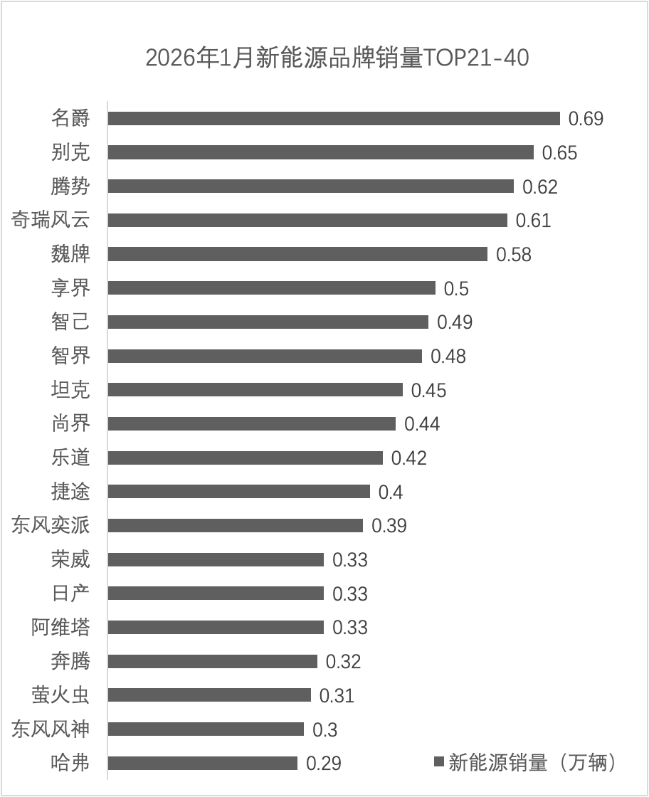 而进入新能源品牌销量前40位只需要0.29万辆的门槛,看上去也并不高。但这也意味着很多品牌会在一季度末开始发力,毕竟努努力,多卖个几千辆也没有问题。