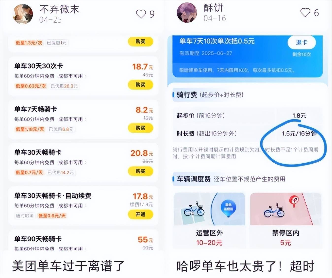 有用户算了一笔账,每天骑车通勤15分钟,一个月下来小两百块,两个月就能买一辆新的自行车了,还有人说,骑一小时花了五块五,够汽车跑好几公里了,这样的体验,只能说骑不起呀。