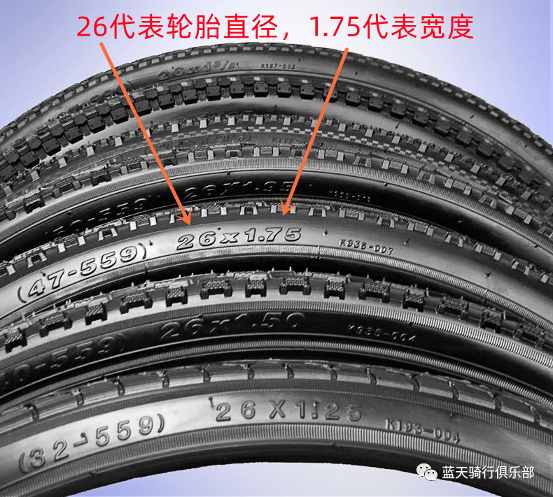 细心的骑友还会发现26x1.75前面的数字(47-559)、(32-559)这个代表什么呢?其实这个和26x1.75是两种说法而已,47代表轮胎的最宽部位是47mm,559代表轮圈的直径559mm,其它规格的外胎比如(50-584),就是27.5x1.95,几乎所有的外胎都有这两个规格标识,习惯用怎么说就怎么说,只不过是两种叫法而已。接下来我们慢慢解读。