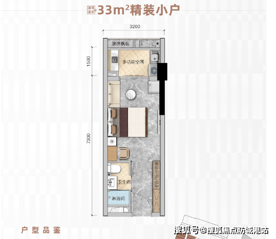 1. 面积与格局:建筑面积约33㎡,标准一房一厅格局,布局方正,空间利用率高,无浪费空间,整体户型紧凑实用,适合单身人士、年轻情侣自住,或作为投资出租房源。