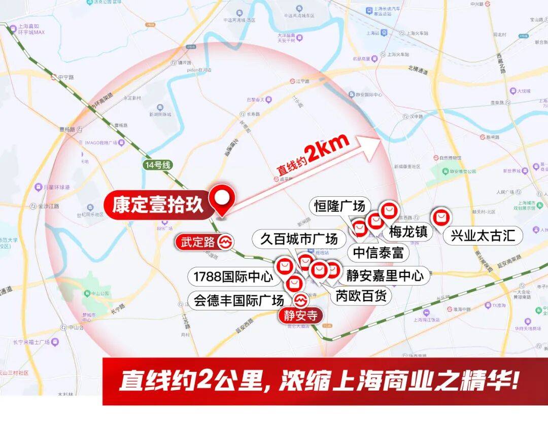 锦上添花的是,康定壹拾玖还是14号线武定路站地铁房,你要知道市中心地铁沿线开发饱和,新的地铁项目极为难得,1站就是静安寺;同时14号线贯通市中心,向东还连接陆家嘴。