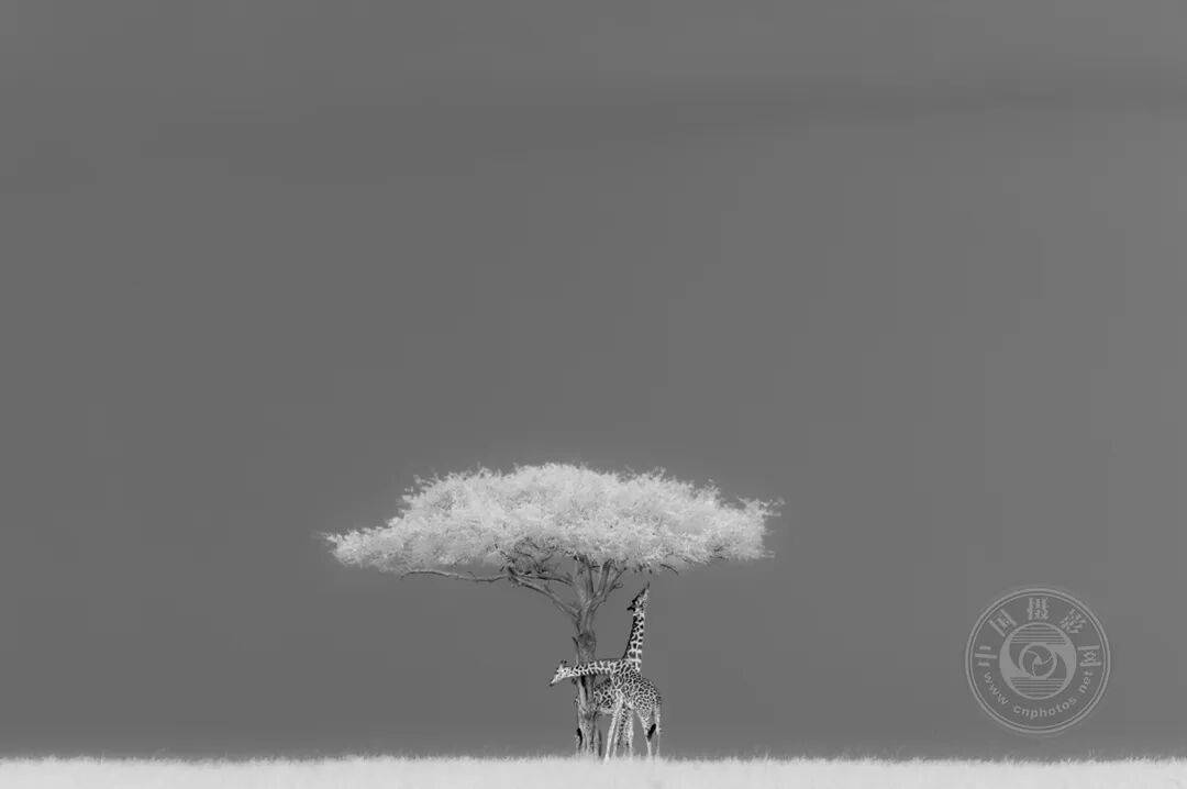 下午在马赛马拉国家保护区,一场风暴正在酝酿,为这幅超现实的欢愉景象营造出绝佳的光线与背景:一棵孤零零的相思树正被长颈鹿啃食,仿佛那树枝是棉花糖。