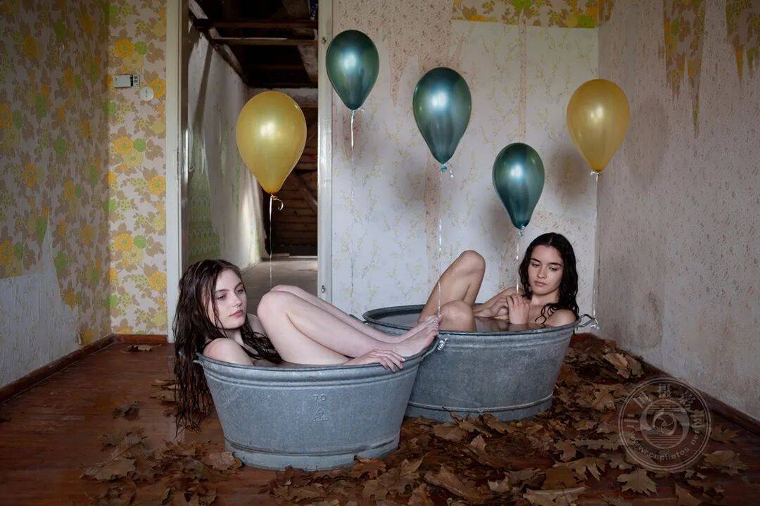 《童年记忆》这幅画描绘了两名女子在废弃农舍同沐浴的场景。她们在隐秘的避难所里通过这个亲密举动,让童年的记忆与梦想重新焕发生机。