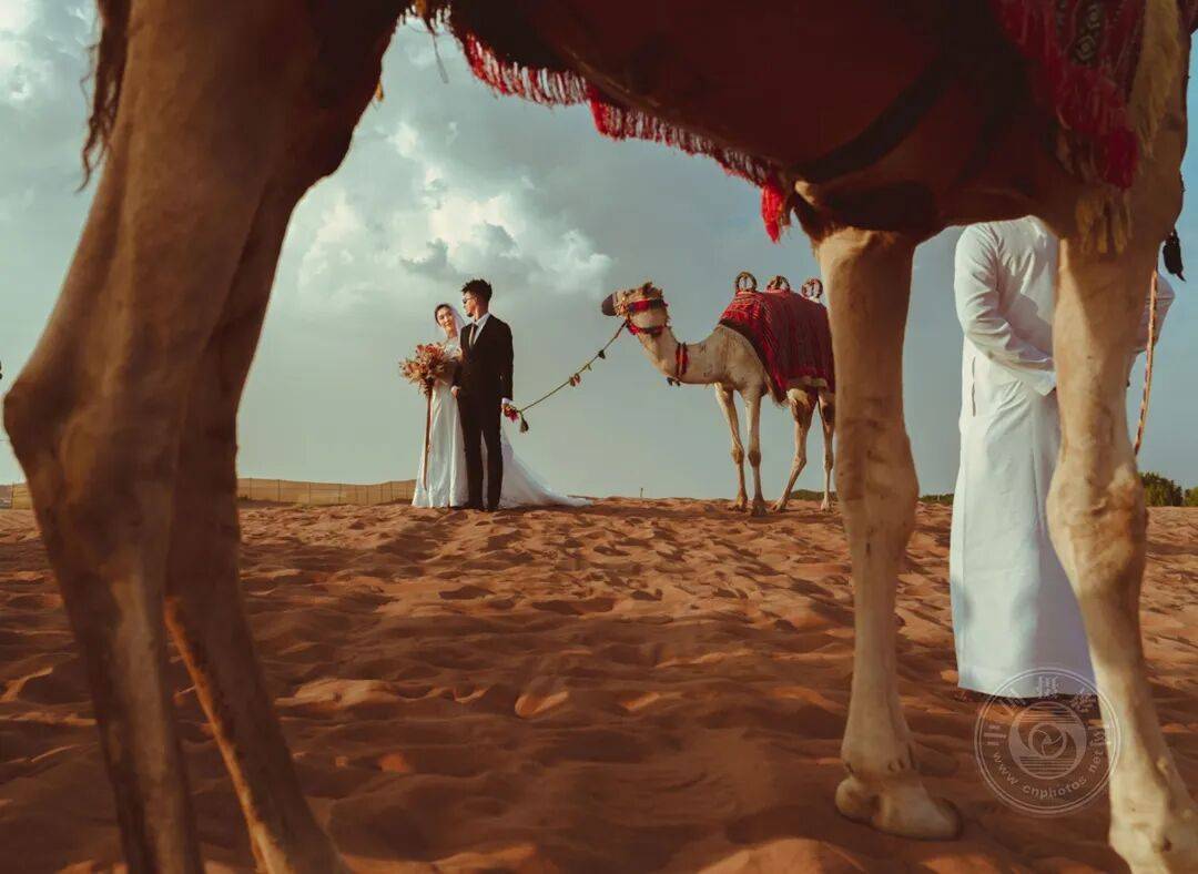 一场浪漫的沙漠时刻,爱情在传统中定格。这对恋人伫立于骆驼群中,文化与情感交融于永恒的画面,唤起联结、传承与永恒的爱。