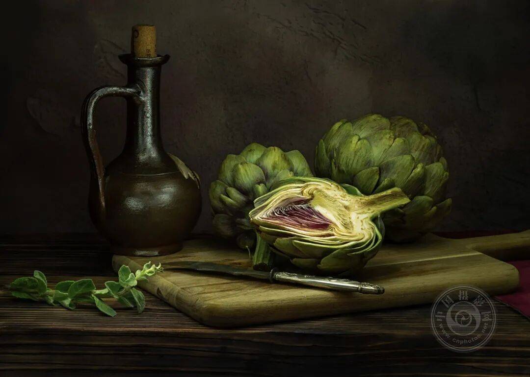 这张照片采用光绘技术创作,是艺术家两年间对静物摄影中该技法探索的成果。加利亚还在其他系列作品中延续了这一主题,包括《蔬菜》与《水果》系列。
