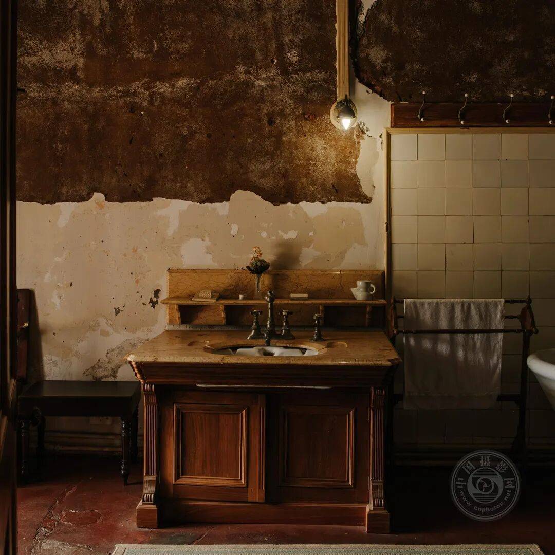这张照片摄于萨米马克斯博物馆的浴室。格罗布勒将此地想象成一个静谧的空间,承载着转瞬即逝的亲密时刻——萨米与妻子在此共享日常生活中的亲密时光:并肩刷牙,交换眼神,遵循着私密的日常节奏。这些瞬间揭示了亲密感如何存在于日常生活的共享静默之中。