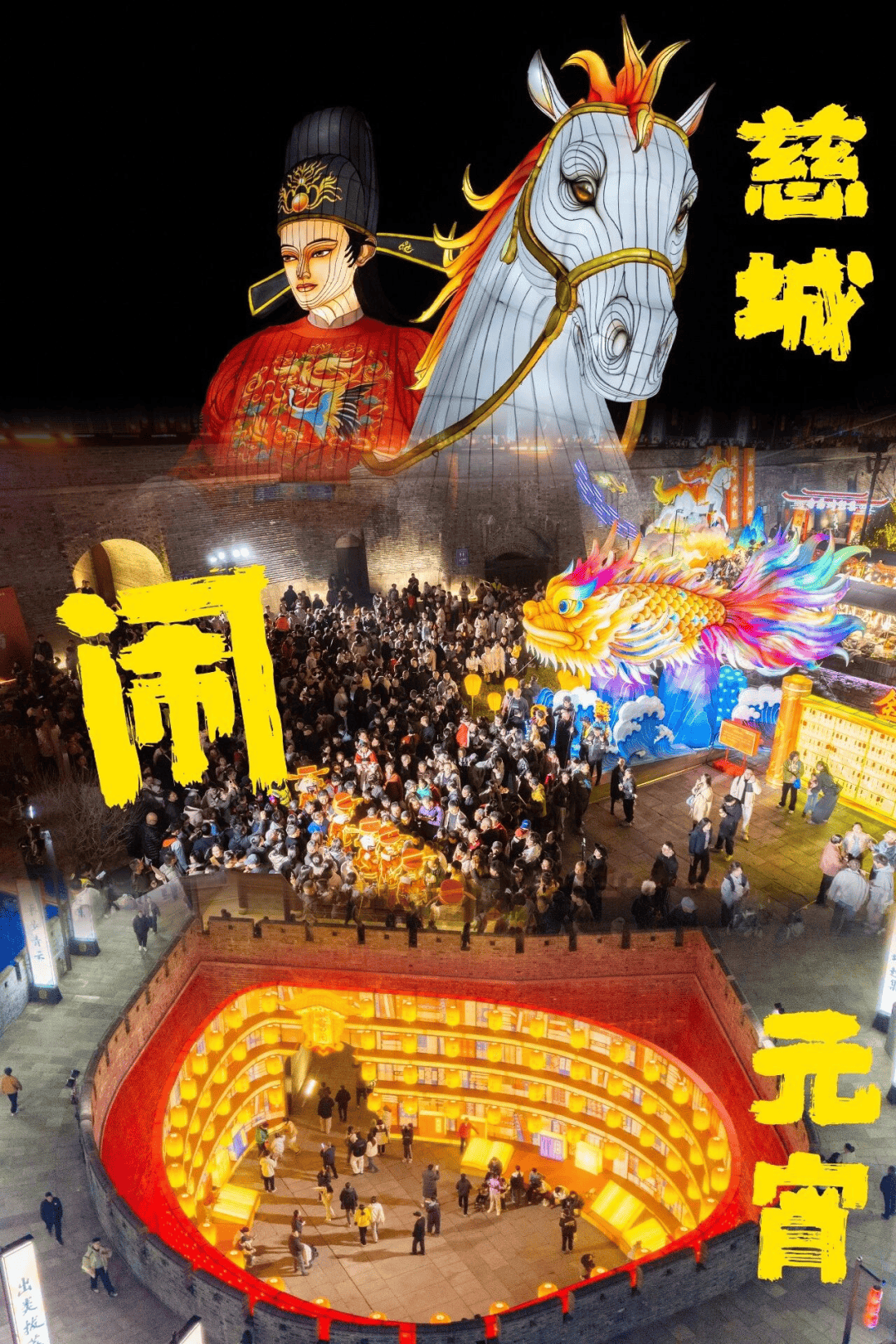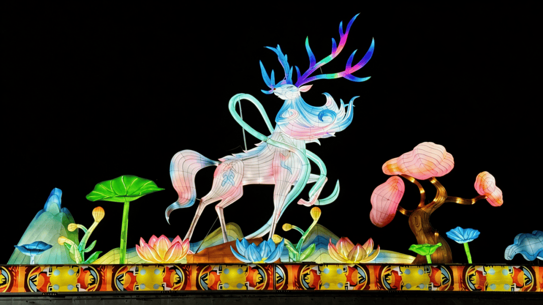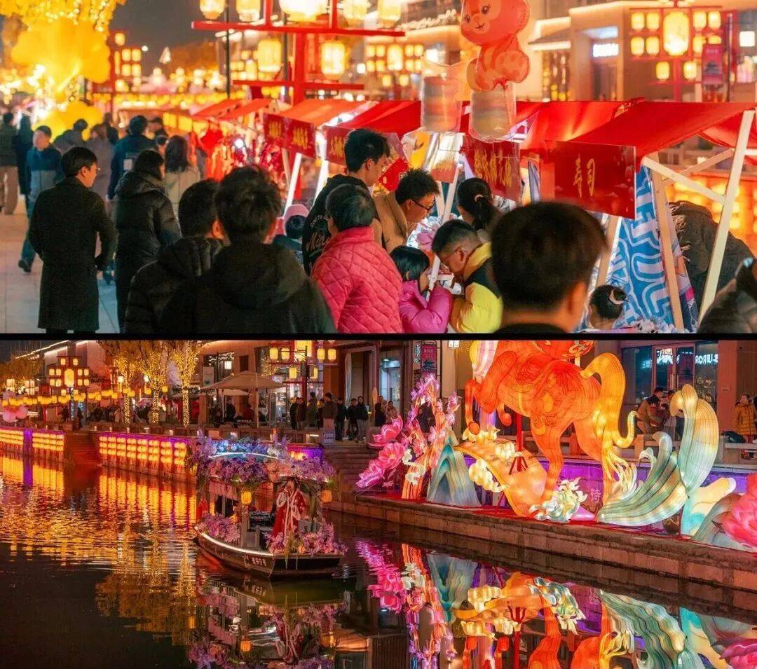 迎恩门水街,千余盏各式花灯沿水而挂,灯影倒映在碧波之上,随流水轻轻摇曳,形成“灯在水中游,人在灯中游”的绝美画卷。元宵节期间有上元音乐会、猜灯谜等精彩表演轮番上演。