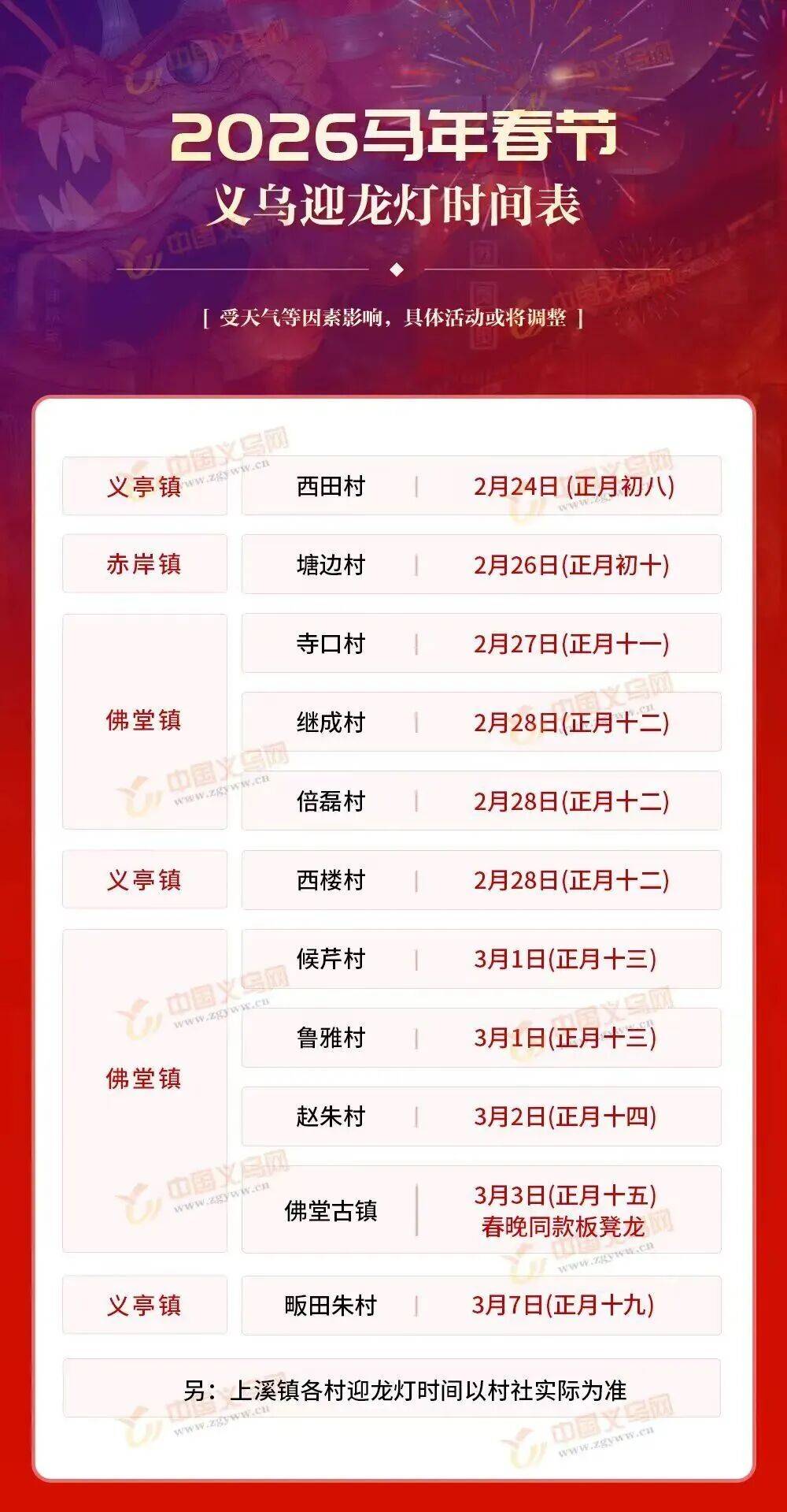 雅湖村(3月1日—3月3日 迎龙灯活动)、下叶村(3月2日、3月3日 迎龙灯活动)