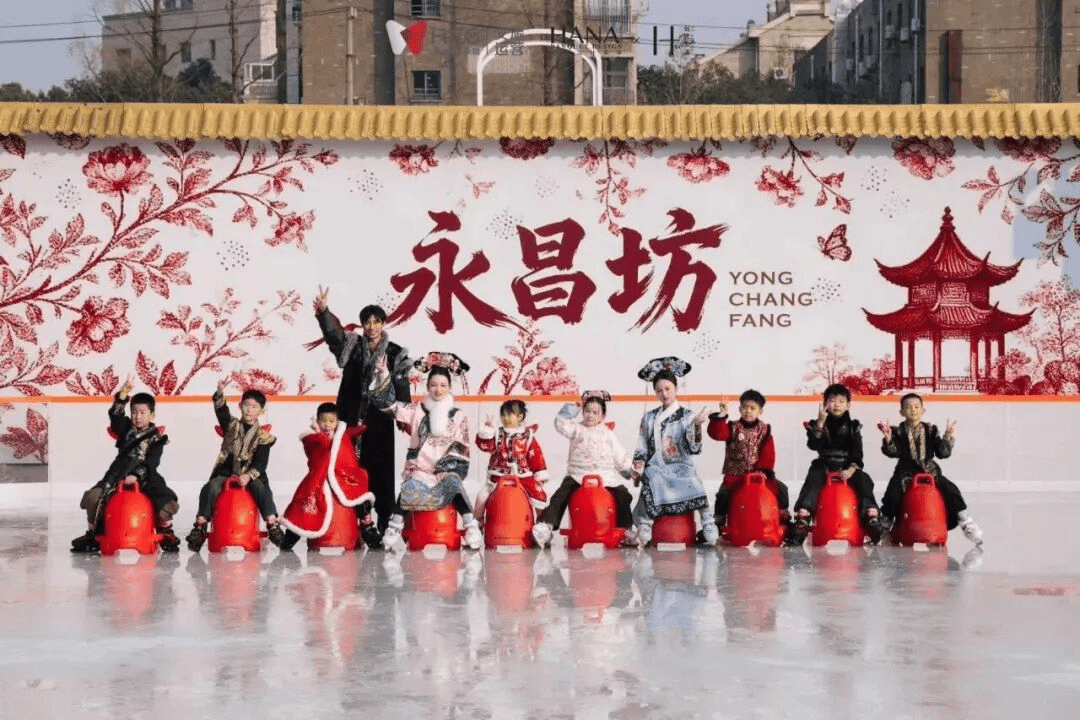 永昌坊化身江南冰雪秘境,将马年祥瑞、宫廷冰嬉与养生文化完美融合。游客可换上一袭古装踏上冰面,在冰上翩跹起舞,体验古时皇家冰嬉的乐趣与风雅。